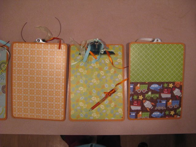 Vanessa, these are great! Thanks for the instruction link. I definitely want to try this with some "boyish" scrapbook paper. They are constantly looking for hard surfaces in carpeted or rug areas. Clipboards would help .